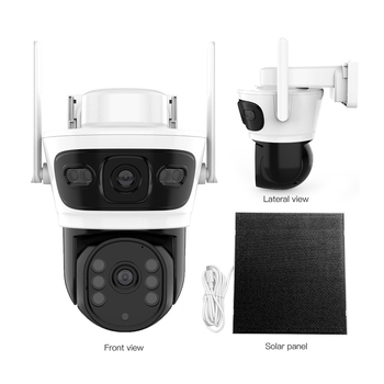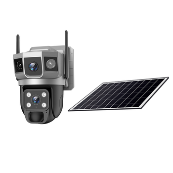 4G 태양광 IP 보안 카메라 PTZ 3 이미지 4MP 듀얼 렌즈 IP 카메라 듀얼 투광 조명 스탠드이있는 실외 태양열 무선 CCTV 카메라